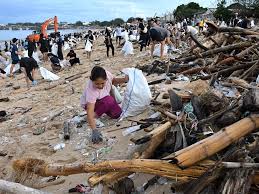 Sebanyak 66,3 ton sampah kiriman berhasil diangkut dari Pantai Kedonganan di Jimbaran, Bal...